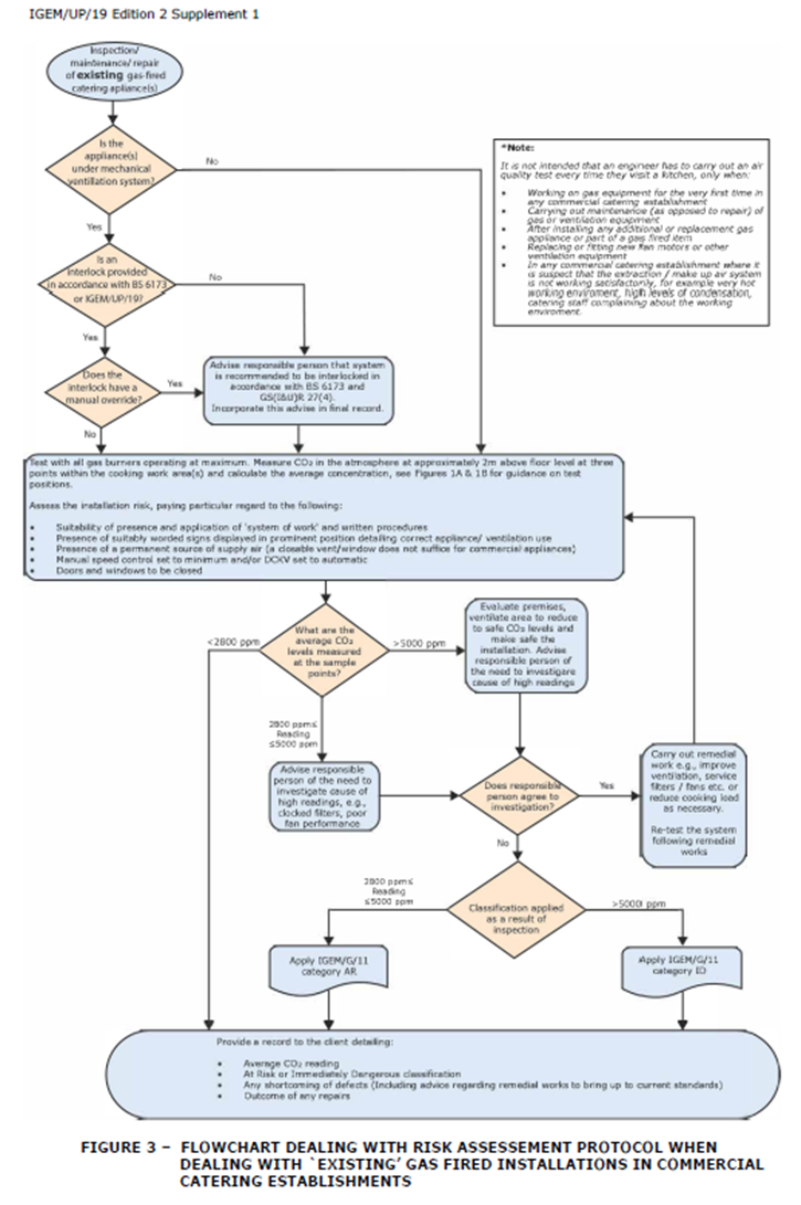 Many will be familiar with the requirement for domestic heating to be vented directly to atmosphere. It should also be obvious that most gas catering equipment is not vented directly to atmosphere but discharges into the kitchen. Thus the imperative to have “adequate ventilation”. Introduced in 2001, the regime has been in place long enough that the initial challenge (“the previous company never condemned our ventilation system”) has largely been accepted.