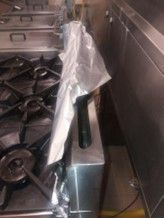 - Do not use silver foil to cover drip trays – still less, as seen here, flues - This would be classed as an illegal modification of an appliance and in breach of gas regulations. At best this will reflect too much heat onto appliances, at worst it will restrict the flow of air and good combustion. If applied to flues, the oven – or any other appliance – they will impede free movement of air, essential for proper combustion, whether being drawn in or being vented.