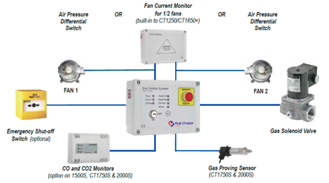 CO and CO2 monitoring linked to the interlock can also be provided.